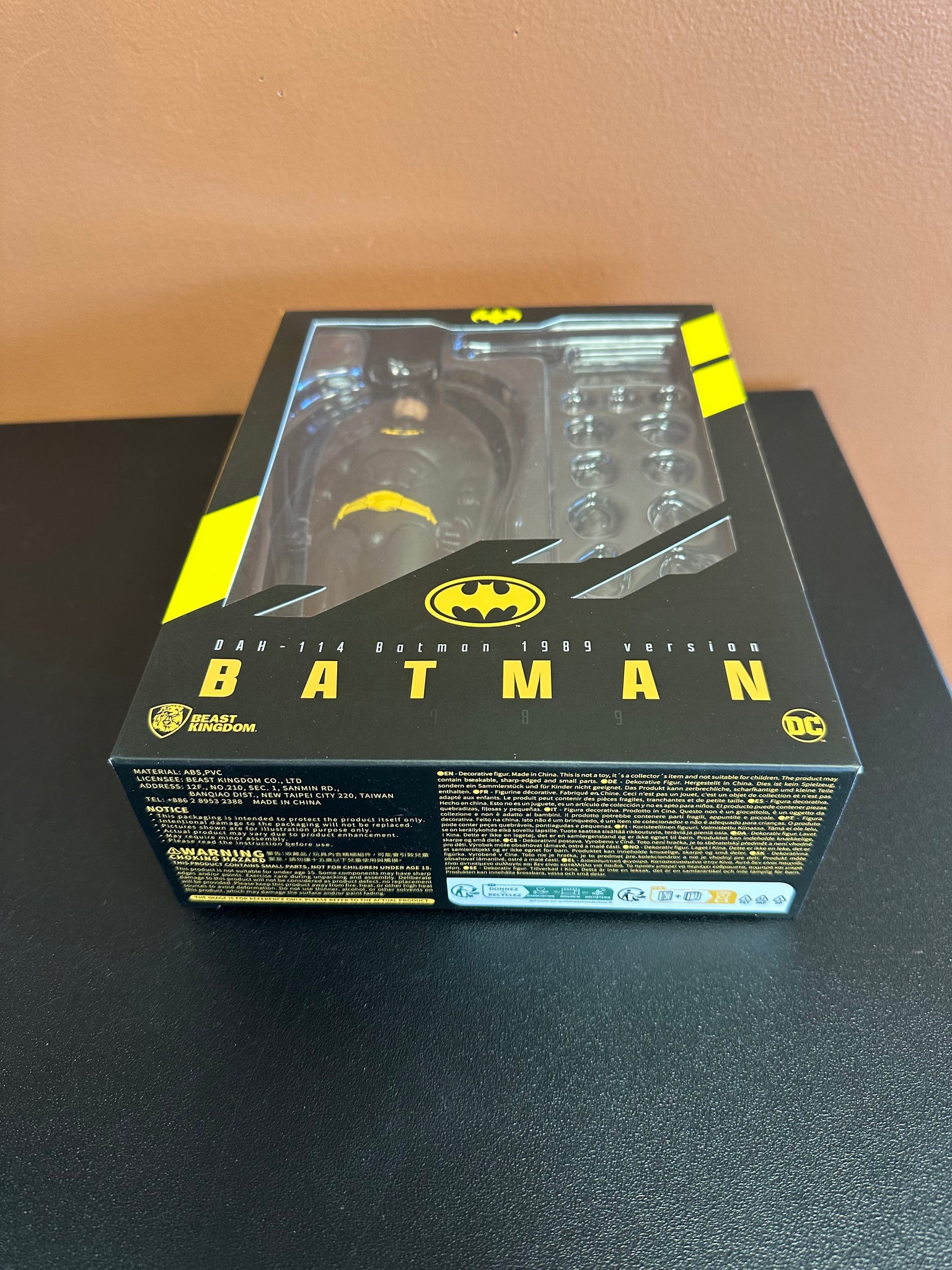Beast Kingdom presents the Batman 1989 DAH-114 Dynamic 8-Ction Heroes Batman Action Figure! This meticulously crafted figure perfectly captures the essence of Batman as portrayed by Michael Keaton, not only recreating the actor's iconic mouth expression but also authentically replicating the distinctive yellow logo, belt details, and the texture of the black rubber suit. Moreover, the cape is crafted from high-quality fabric, and with over 22 points of articulation, collectors can relive the classic 1989 Batman experience like never before. Ages 15 and up.
