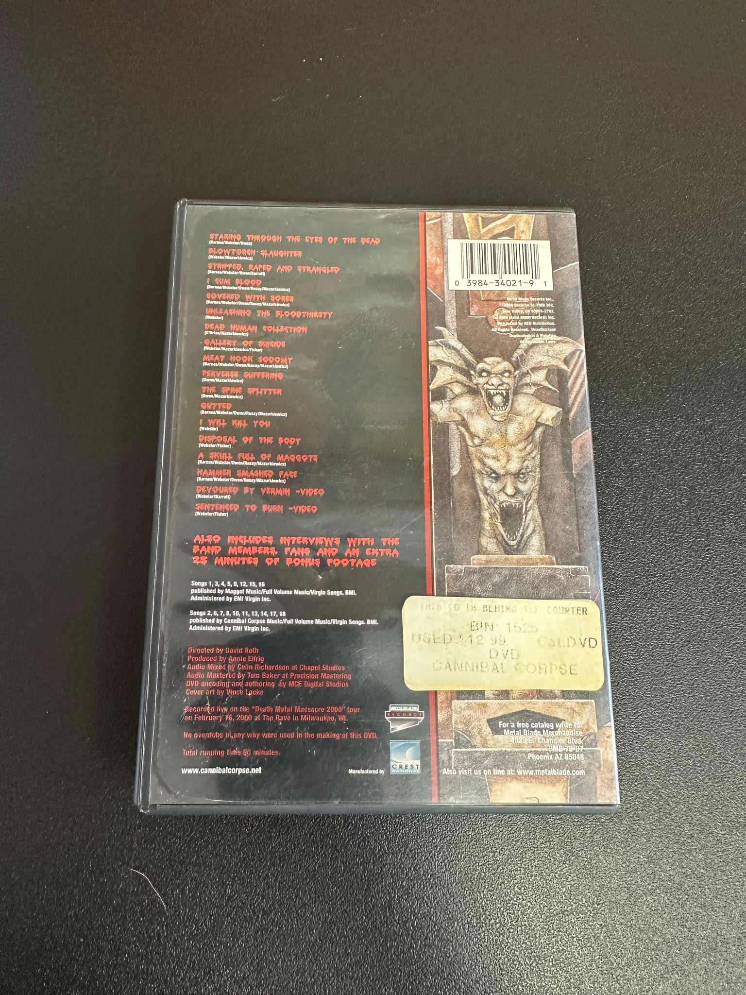 Cannibal Corpse Live Cannibalism Band 2000 [DVD] Preowned