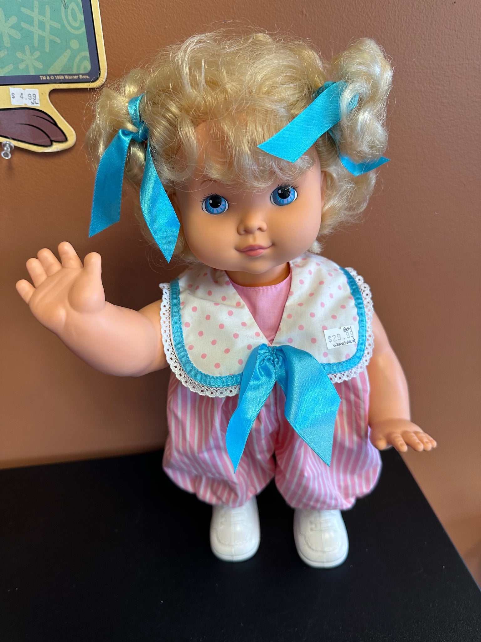 Preowned- played with condition. Works with 3- C barteries-not included. Comes with instruction sheet. Approximately 16” tall standing up. See pictures for condition.