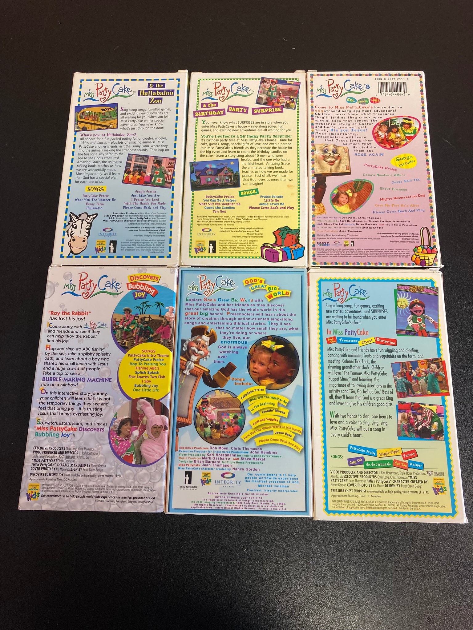 VHS’ tapes included “the Hullabaloo Zoo” “Birthday Party Surprise” “Egg-Strava-Ganza” “Discovers Bubbling Joy” “God’s Great Big World” “Treasure Chest Surprise”